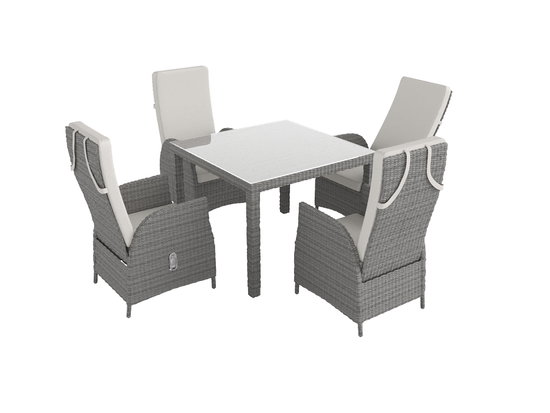 L’ensemble Ceres Relax est disponible de la taille S (4 chaises) à la taille XXL (10 chaises). Cet ensemble table et chaises accueillera vos repas familiaux ou entre amis avec confort. La table rectangulaire accueillera de bons petits plats. Une poignée sur le côté du fauteuil vous permets de régler le dossier selon vos envies. Les coussins sont remplis de mousse et les housses sont en textilène traité déperlants. Nous proposons également des jeux de housses de couleur pour habiller votre ensemble Ceres Relax selon vos goûts.